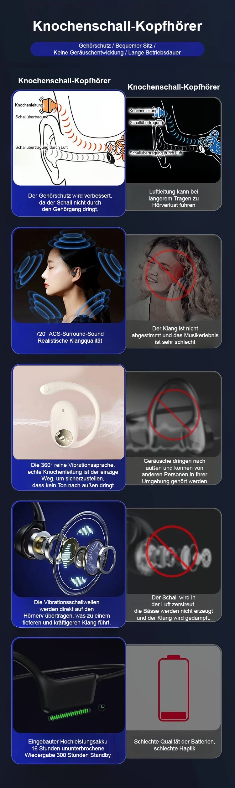 80° drehbares OWS-Bluetooth-Headset